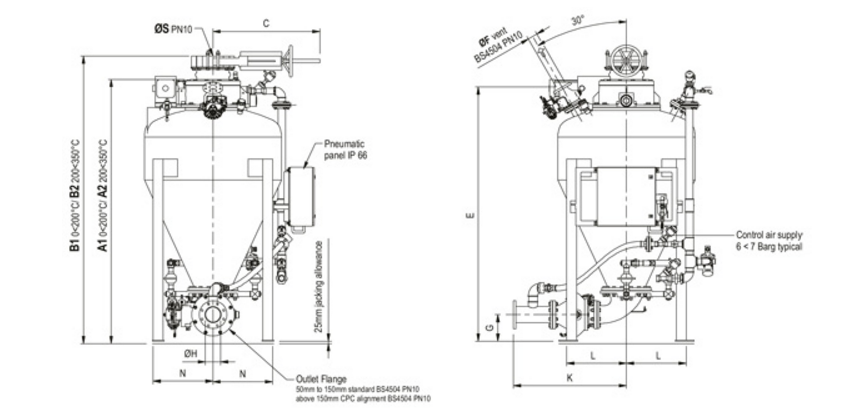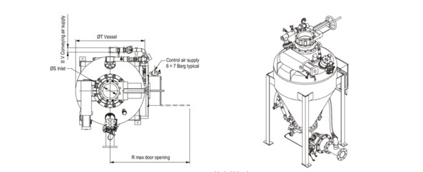 PD泵一般單獨運行,其結(jié)構(gòu)為: PD泵含有入口圓頂閥、排氣圓頂閥、出口圓頂閥和流化管路,并有主進(jìn)氣管路和出口補(bǔ)氣管路。PD泵內(nèi)設(shè)有高料位計和壓力開關(guān)。PD泵特點: 1、大泵體、細(xì)管道; 2、 適合精細(xì)的流動性好的物料; 3、 輸送效率高且耗氣量低; 4、 輸送距離小于350m時最經(jīng)濟(jì); 5、 泵體需要預(yù)加壓,所以不適合磨損性大的物料;