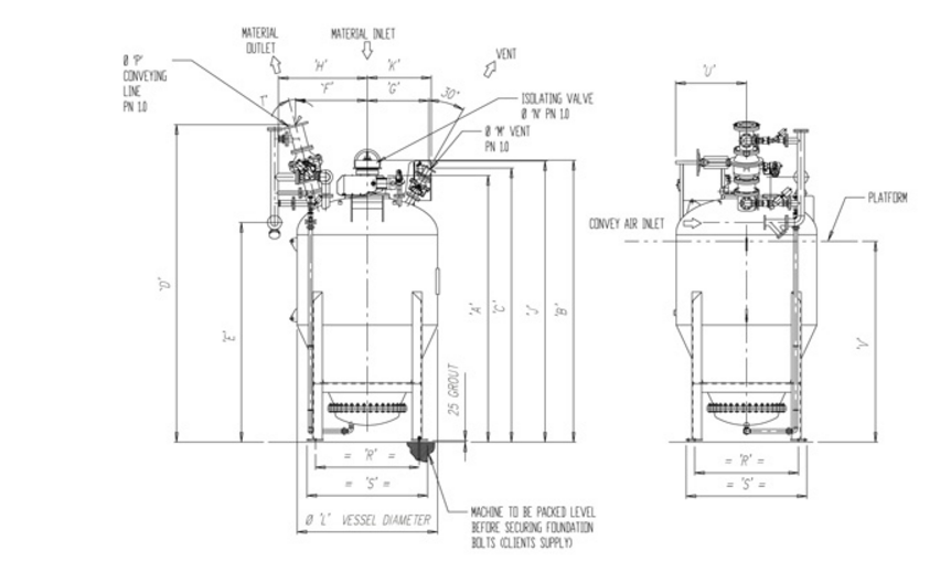 TD泵介紹 TD泵為上出料方式,適用于大容量、流動性較好的物料輸送,一般單獨運(yùn)行,其結(jié)構(gòu)為: 1、安裝有入口圓頂閥、出口圓頂閥、排氣圓頂閥; 2、主輸送空氣閥、出口進(jìn)氣閥、流化進(jìn)氣閥和輔助進(jìn)氣閥; 3、泵內(nèi)料位計、輸送壓力變送器、就地壓力表; 4、流化板采用織物。 TD泵特點: 1、遠(yuǎn)距離輸送易流化的粉料;